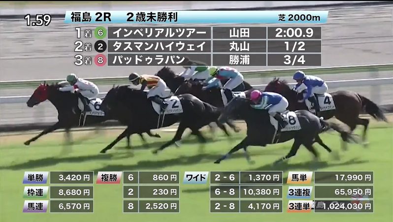 ◎インペリアルツアー(5人気)1着 単勝3,420円、複勝860円