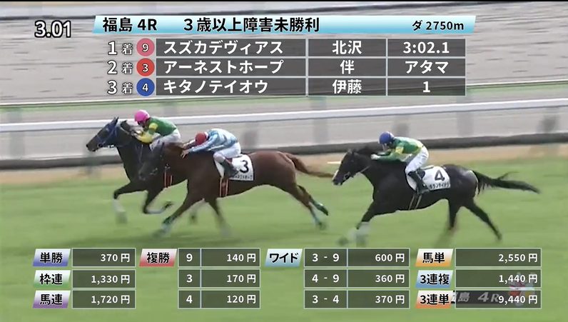 ◎テセウス(7人気)1着 単勝2,550円、複勝370円 - 11/1【福島4R】3歳以上障害未勝利