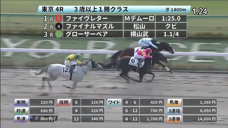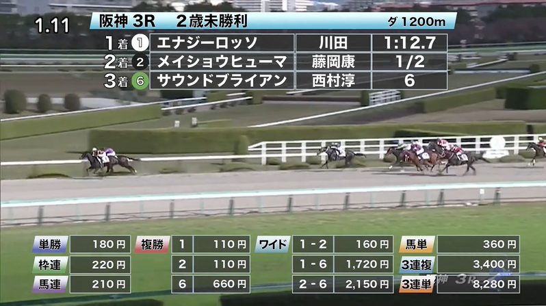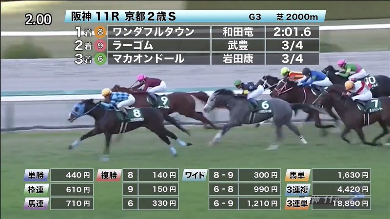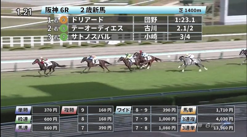 ◎オカリナ(4人気)1着 単勝830円、複勝370円