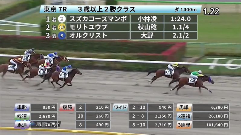 ◎ショーヒデキラ(7人気)1着 単勝1,780円、複勝430円 - 11/14【東京9R】オキザリス賞