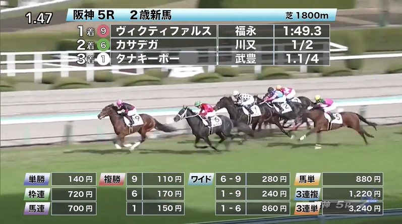 ◎タイトルホルダー(5人気)2着 複勝230円 - 11/23【阪神1R】2歳未勝利