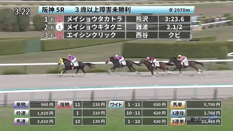 ◎タガノイグナイト(5人気)3着 複勝220円 - 11/14【阪神8R】京都ジャンプステークス