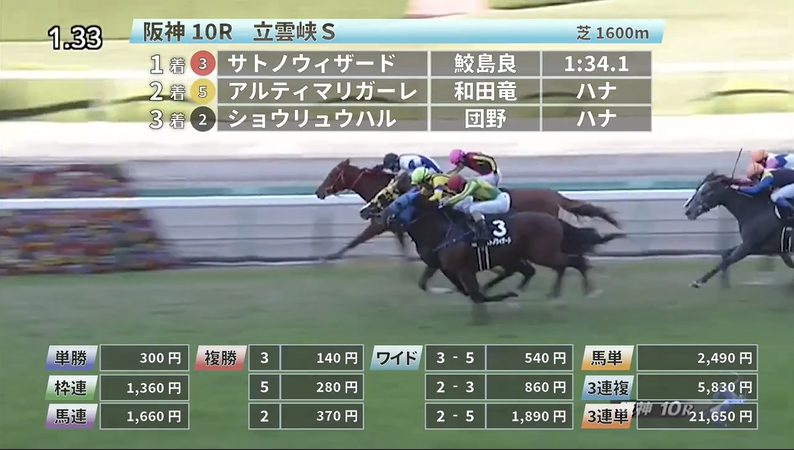 ◎ダノンハーロック(4人気)2着 複勝410円 - 11/21【阪神12R】3歳以上1勝クラス