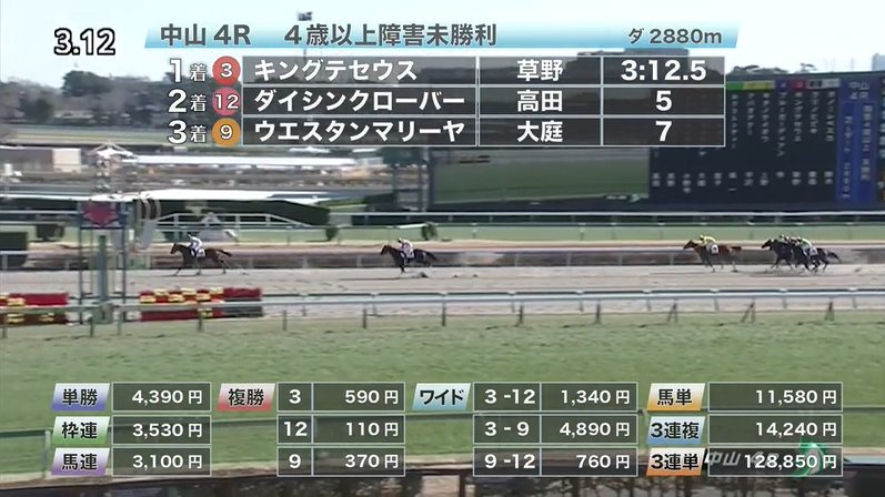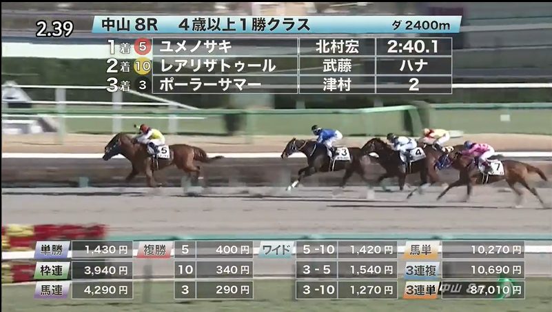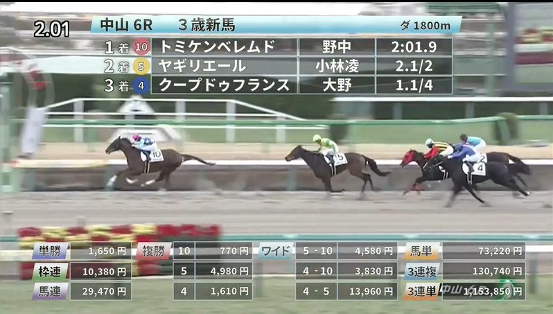 中山競馬の穴馬的中結果