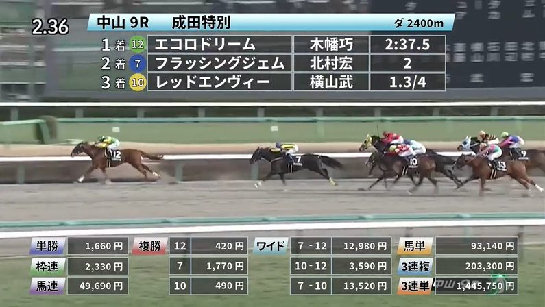 ◎エコロドリーム(7人気)1着 単勝1,660円、複勝420円