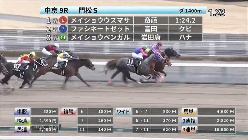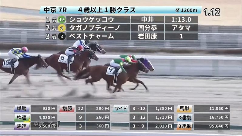 - 1/9【中山12R】4歳以上2勝クラス