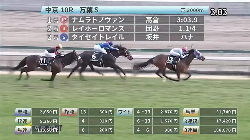 ◎レイホーロマンス(5人気)2着 複勝320円