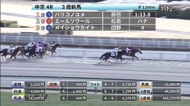 ◎バリコノユメ(4人気)1着 単勝1,210円、複勝340円