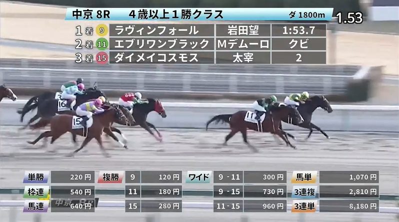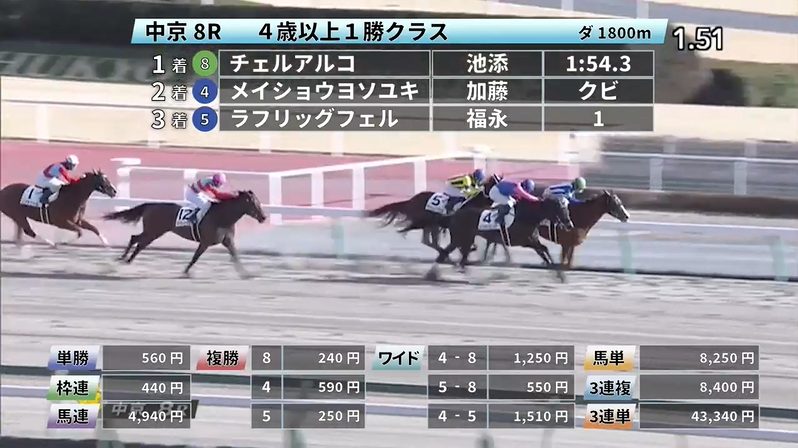 - 1/11【中京8R】4歳以上1勝クラス