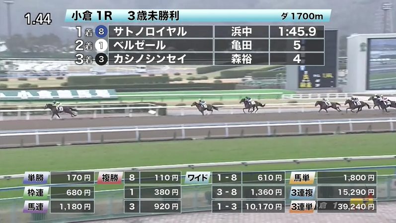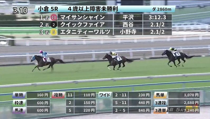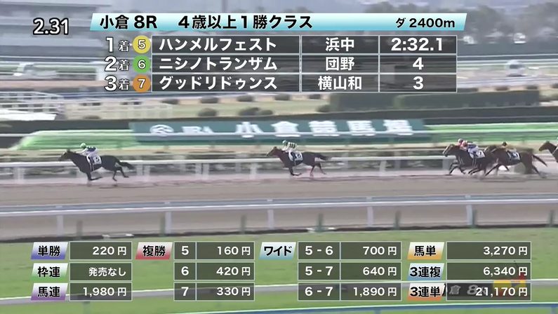 小倉競馬の穴馬的中結果