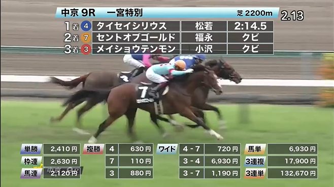 ここでは◎メタスペクター(10番人気)→◎ノットイェット(7番人気)の穴馬同士の決着で馬連は20,110円、ワイド5,420円の配当となりました。