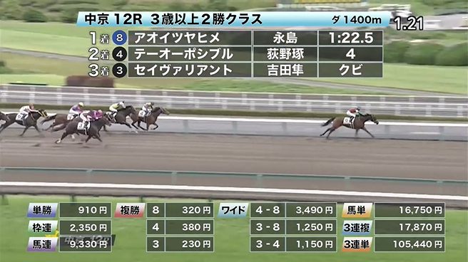 - 6/5【中京12R】3歳以上2勝クラス