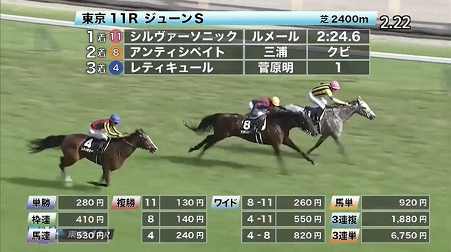 ◎サイレントギフト(7人気)2着 複勝420円 - 6/6【東京9R】ホンコンJCT