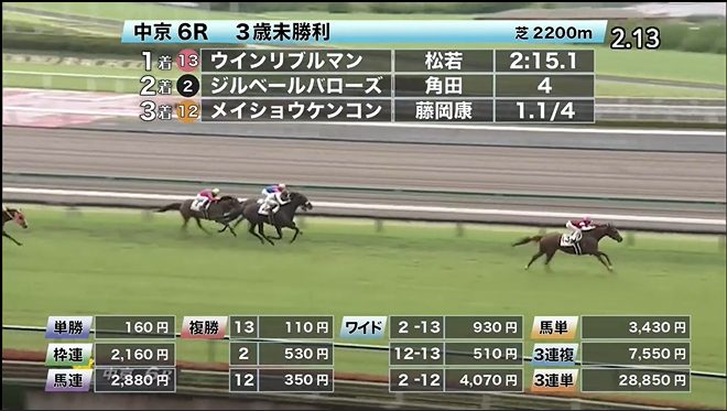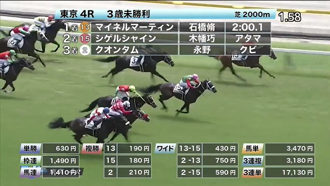 ◎マイネルマーティン(2人気)1着 単勝630円、複勝190円 - 6/12【東京7R】3歳以上1勝クラス