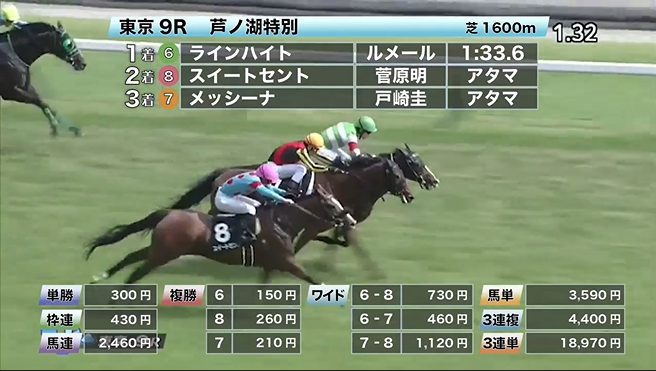 ◎ロードレイライン(6人気)2着 複勝370円 - 6/13【東京7R】3歳以上1勝クラス