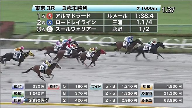◎ニホンピロタイズ(5人気)3着 複勝340円