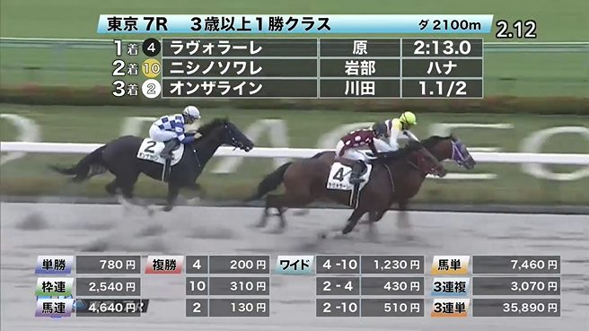 ◎ラヴォラーレ(3人気)1着 単勝780円、複勝200円