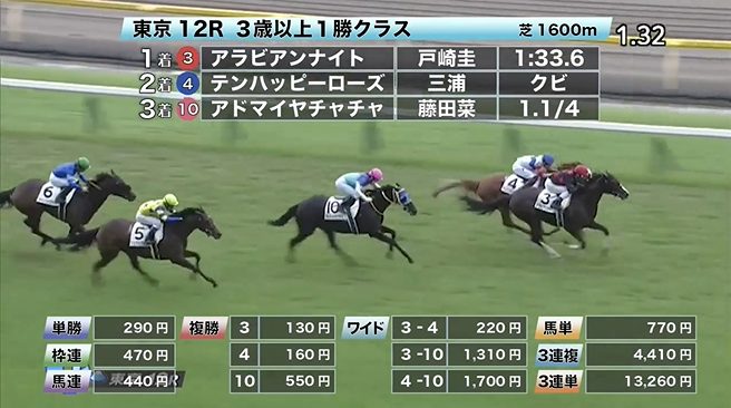 ◎テリーヌ(3人気)1着 単勝750円、複勝200円