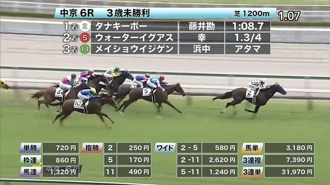 ◎タナキーボー(4人気)1着 単勝720円、複勝250円