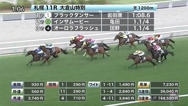 ◎インザムービー(5人気)2着 複勝290円 - 6/12【札幌12R】HTB賞