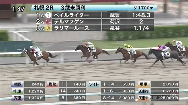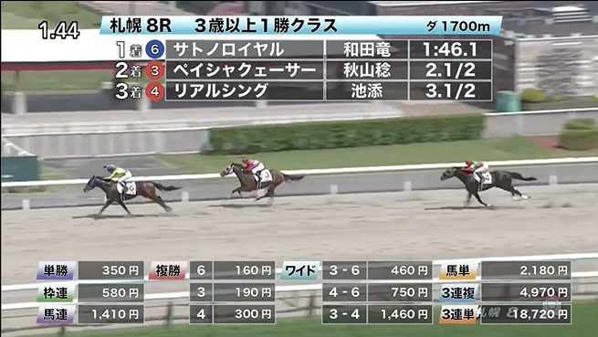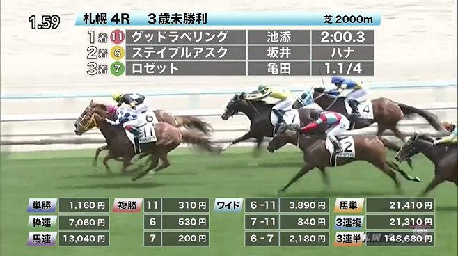◎ステイブルアスク(8人気)2着 複勝530円 - 6/13【札幌8R】3歳以上1勝クラス