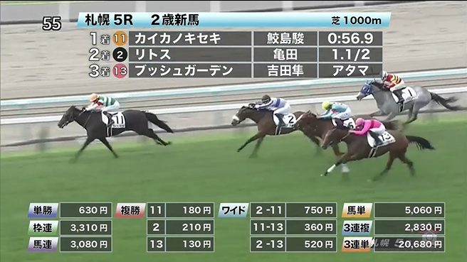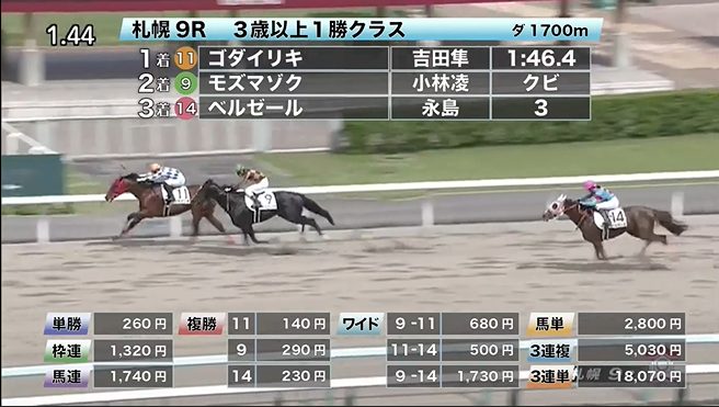 ◎リトス(4人気)2着 複勝210円 - 6/12【札幌7R】3歳以上1勝クラス