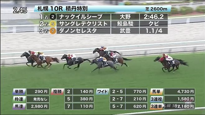 ◎サングレデクリスト(6人気)2着 複勝380円 - 6/12【札幌11R】大倉山特別