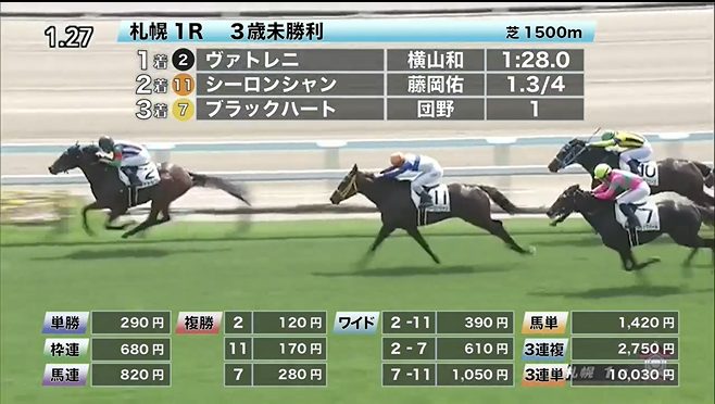 ◎シーロンシャン(2人気)2着 複勝170円 - 6/13【札幌4R】3歳未勝利
