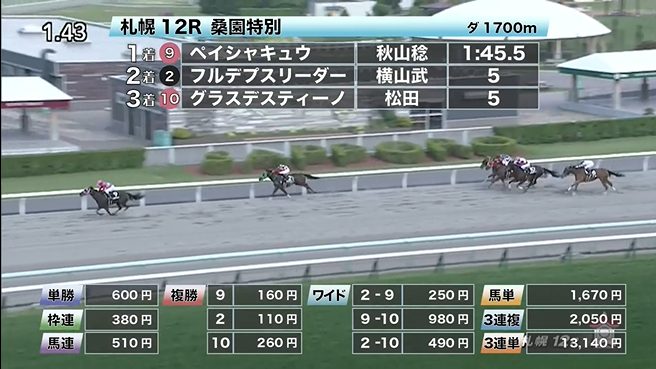 ◎ペイシャクェーサー(3人気)2着 複勝190円 - 6/13【札幌9R】3歳以上1勝クラス