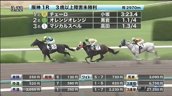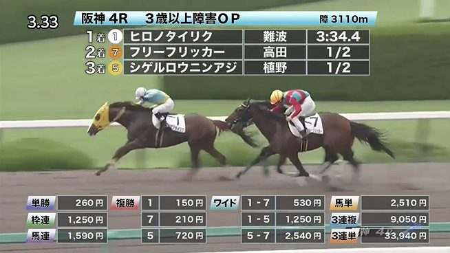 - 6/19【阪神4R】3歳以上障害オープン