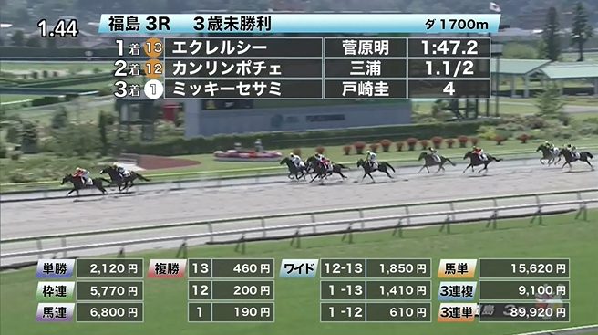 ◎エクレルシー(7人気)1着 単勝2,120円、複勝460円 - 7/18【福島4R】3歳未勝利