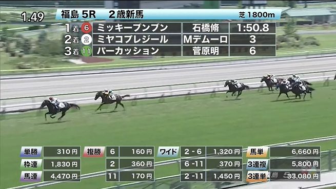 ◎ミヤコプレジール(6人気)2着 複勝360円 - 7/18【福島6R】2歳新馬