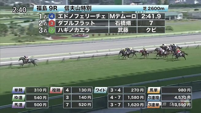 ◎トーセンクレセント(3人気)1着 単勝580円、複勝200円 - 7/11【福島8R】3歳以上1勝クラス