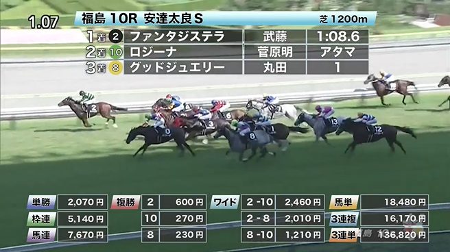 ◎インペリアルフィズ(10人気)1着 単勝4,200円、複勝900円 - 7/4【福島3R】3歳未勝利