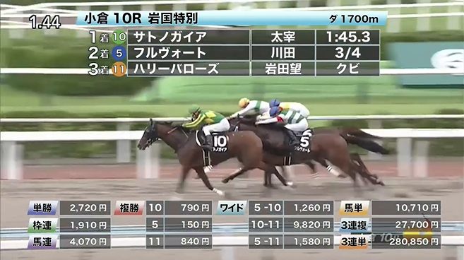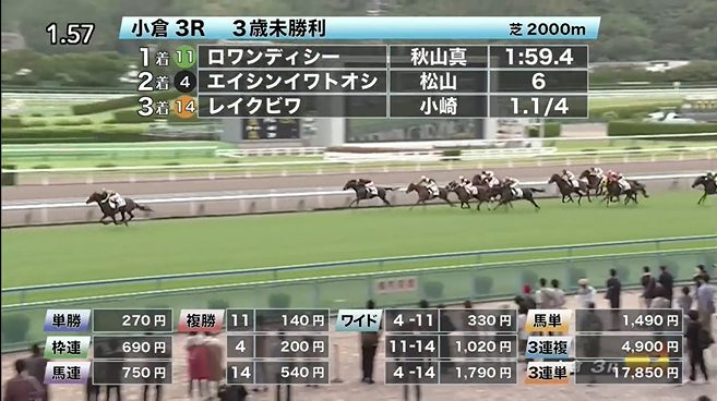 ◎イチザウイナー(8人気)1着 単勝3,970円、複勝760円 - 7/10【小倉7R】3歳未勝利