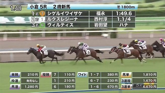 ◎ヒシカムイ(5人気)3着 複勝370円 - 7/4【小倉5R】2歳新馬