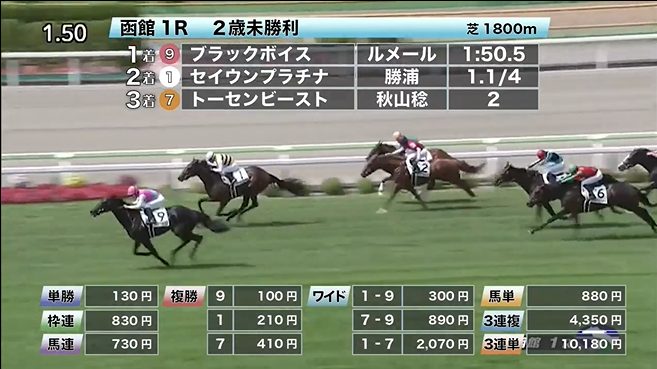 ◎ジュストコル(7人気)2着 複勝360円 - 7/3【函館1R】2歳未勝利