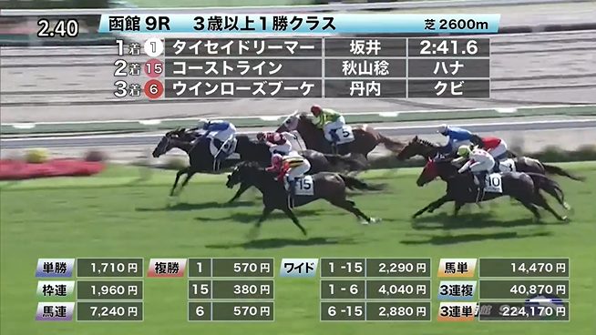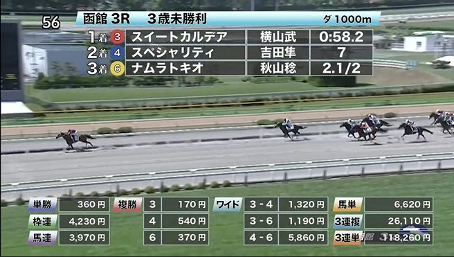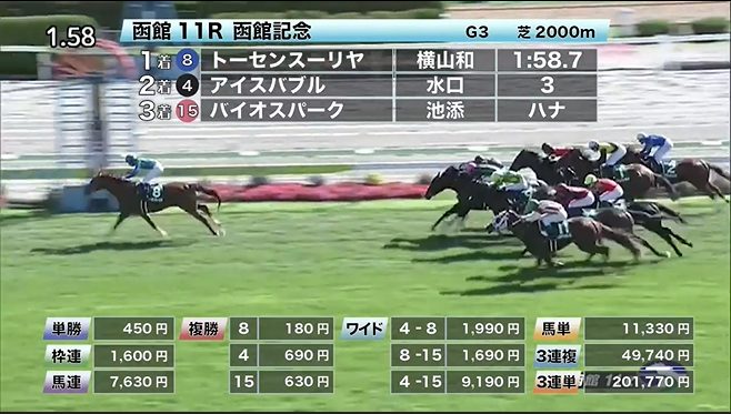 ◎アルムファーツリー(5人気)1着 単勝1,060円、複勝310円 - 7/10【函館9R】3歳以上2勝クラス