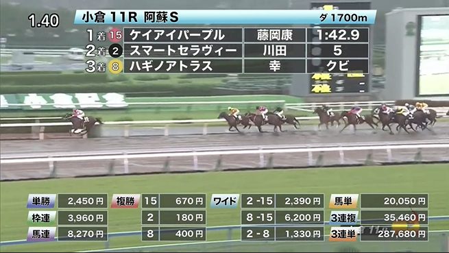 ◎ラストヌードル(6人気)1着 単勝520円、複勝270円 - 8/14【小倉11R】阿蘇ステークス