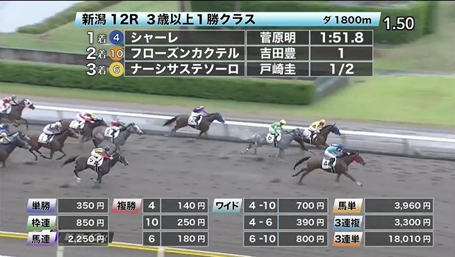 | 8/15 新潟 | 12R | 10R | 83.3% |