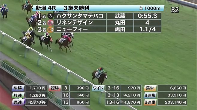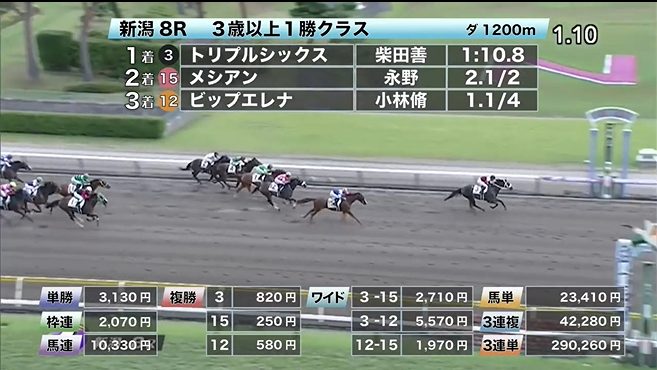 ◎ニューフィー(14人気)3着 複勝860円 - 8/15【新潟8R】3歳以上1勝クラス