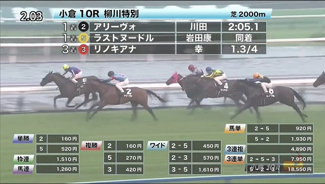 ◎ラストヌードル(6人気)1着 単勝520円、複勝270円 - 8/14【小倉11R】阿蘇ステークス