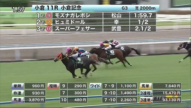 ◎テーオールノワール(2人気)2着 複勝200円 - 8/15【小倉11R】小倉記念