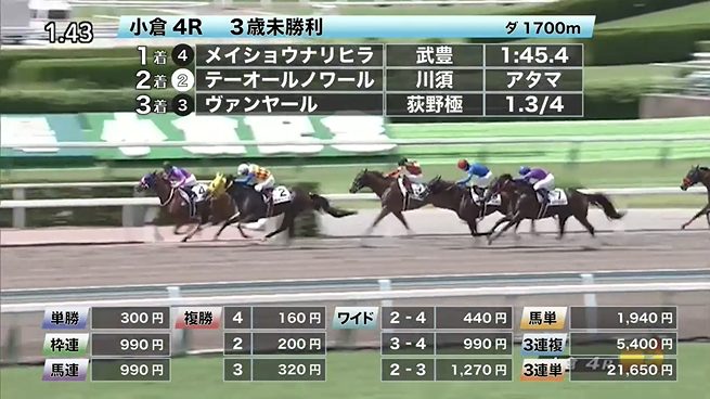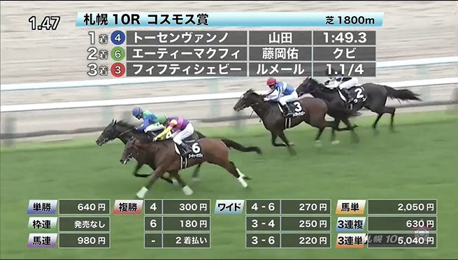 ◎トーセンヴァンノ(4人気)1着 単勝640円、複勝300円