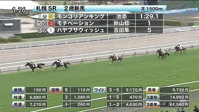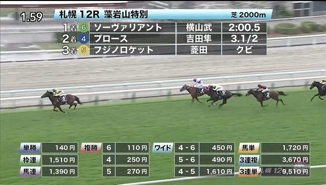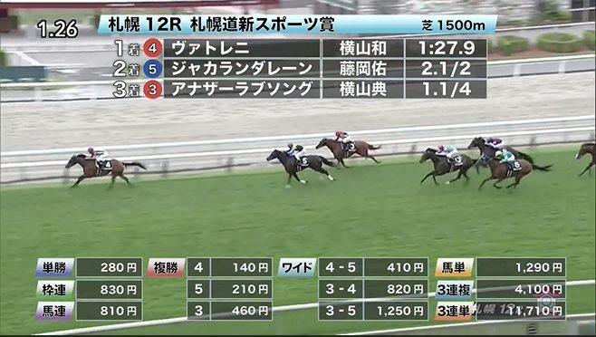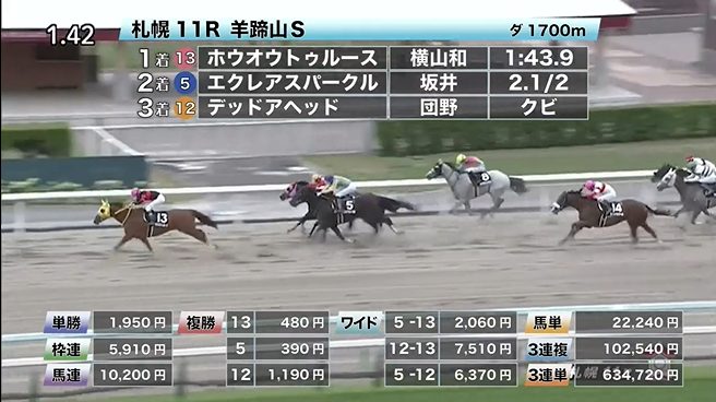 ◎トーセンヴァンノ(4人気)1着 単勝640円、複勝300円 - 8/14【札幌11R】羊蹄山ステークス