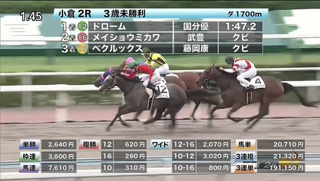 小倉競馬の穴馬的中結果