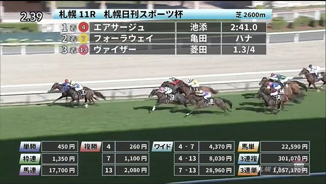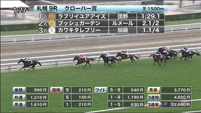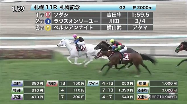 ◎ラブリイユアアイズ(4人気)1着 単勝990円、複勝210円 - 8/22【札幌11R】札幌記念