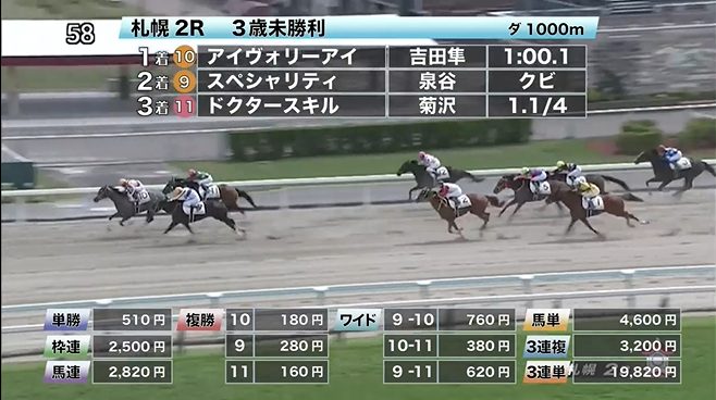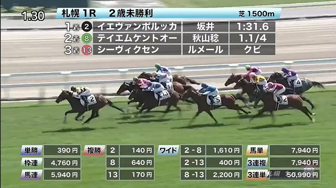 札幌競馬の穴馬的中結果