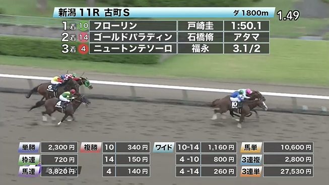 ◎フローリン(7人気)1着 単勝2,300円、複勝340円