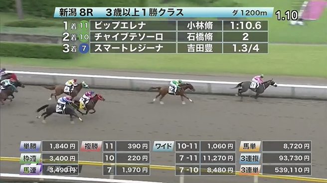 ◎ビップエレナ(8人気)1着 単勝1,840円、複勝390円 - 9/4【新潟10R】赤倉特別